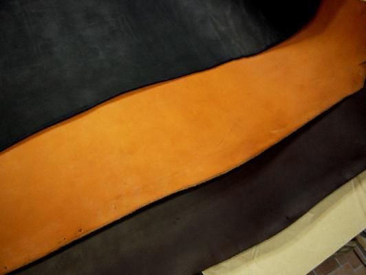 表・裏で表皮を張り合わせる場合 薄い財布で1.2mm厚位と0.6mm厚位の張り合わせ